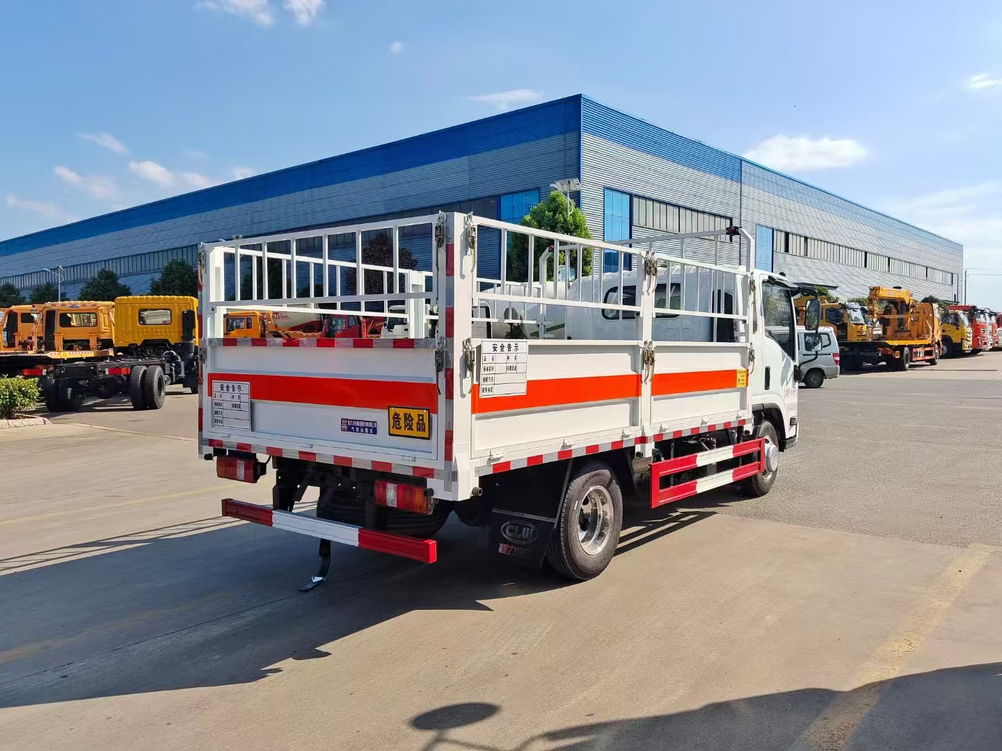 | 上裝配置 | 外板采用1.2MM厚冷軋板,內(nèi)襯為矩形管骨架牢靠穩(wěn)定,底板3mm板材,上鋪有靜電膠皮,有靜電帶、滅火器、防火罩。整車國標反光標示及警告標。可選裝無柵欄,車型顏色可選,選裝液壓尾板。 | ||
