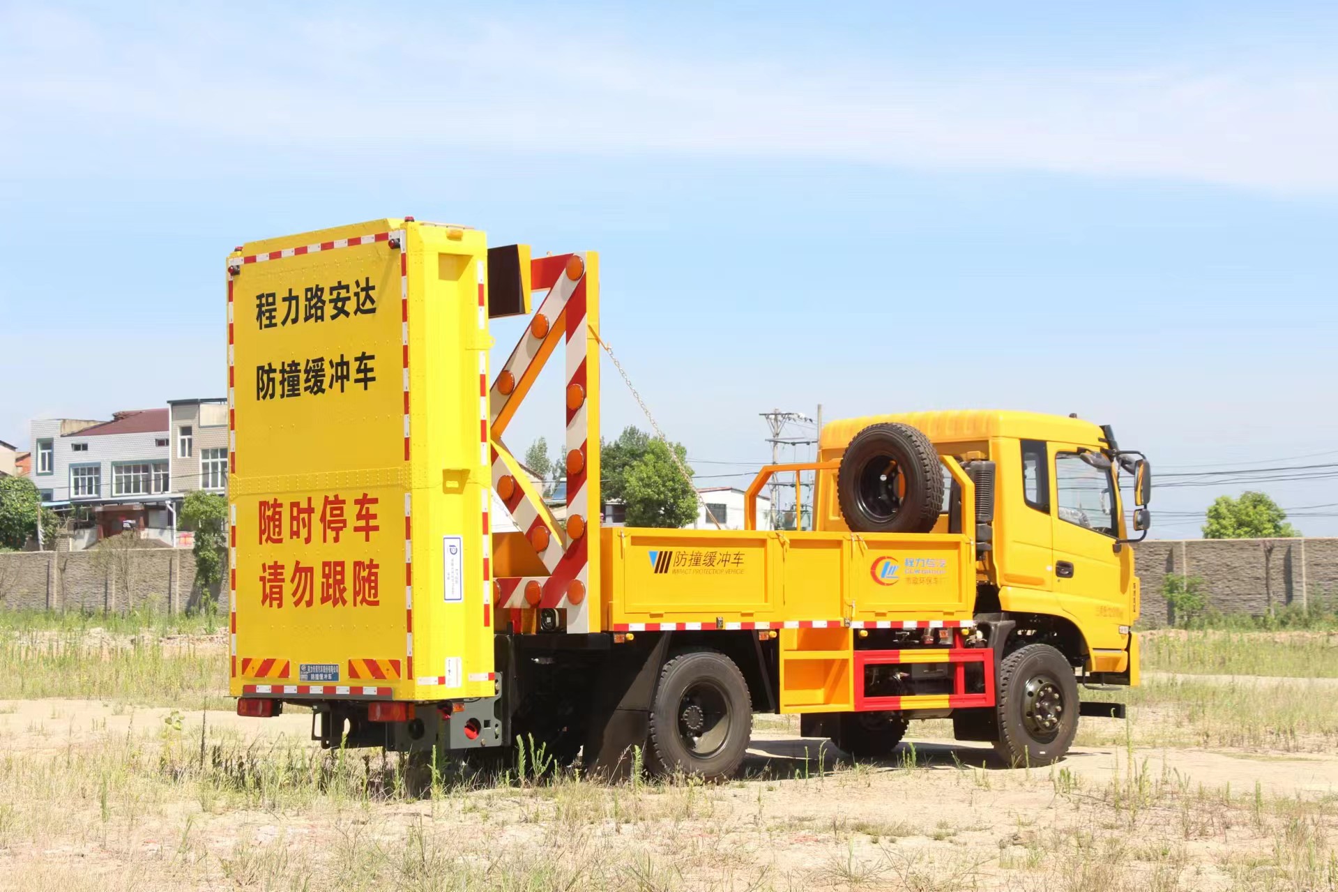 | 上裝配置 | 采用Q235國標邊3mm底板花紋板4mm厚,箱體后部防撞緩沖模塊包采用國際知名技術產品100E防撞緩 沖模塊,防撞緩沖吸能模塊主要由車載防撞緩沖墊和導向標志架組成,充當施工作業車輛后方的緩沖衛士。 如若發生追尾事故,能夠在肇事車輛和前方施工作業區域之間構建一個緩沖區域,通過機具結構變形吸收撞 擊的能量,最大限度地降低被保護人員及設備遭到碰撞的幾率。高性能液壓系統,可實現快速舉升和落下操 作,方便設備運輸轉場,一鍵啟動功能,舉升和落下防撞裝置,當防撞裝置未完全落下到工作位置或舉升到 垂直運輸位置時,會有自動警告音提示。 | ||