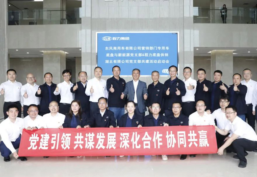 5月末,程力集團(tuán)黨委牽頭,東風(fēng)商用車有限公司營銷部門專用車底盤與新能源黨支部攜手程力底盤供銷湖北有限公司黨支部,聯(lián)合開展“奮進(jìn)新時(shí)代,共創(chuàng)向未來”共建活動(dòng)。